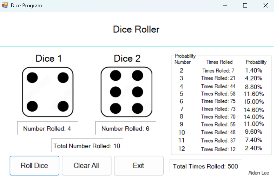 Dice Probability ProgramDate Completed: 9/23/25This program uses probability to roll