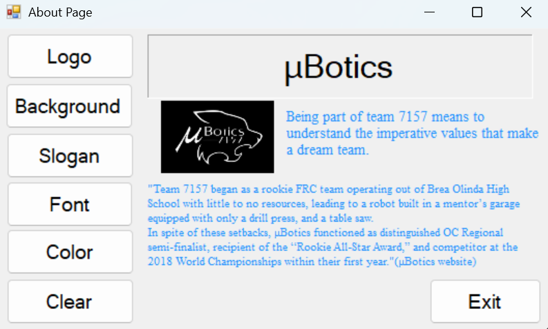 About Page ProgramDate Completed: 8/27/25This form makes the logo, background, and slogan