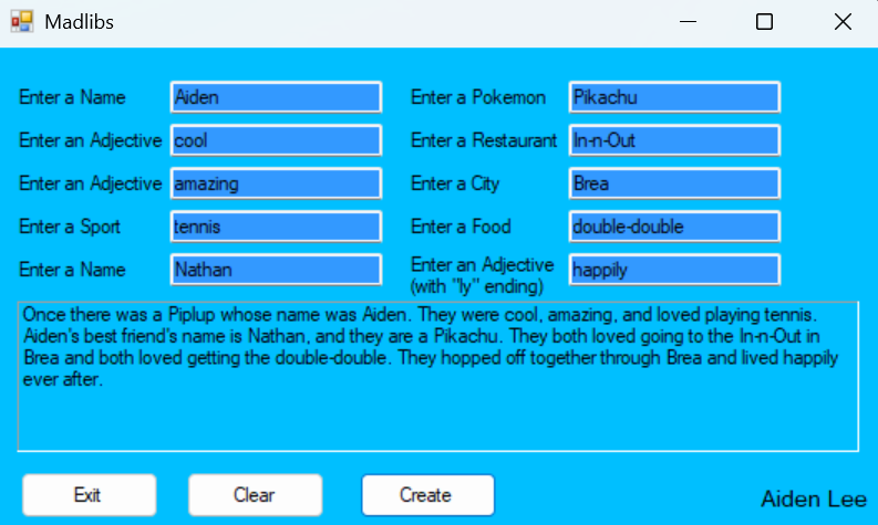 Madlibs ProgramDate Completed: 9/4/25This program uses concatenation and